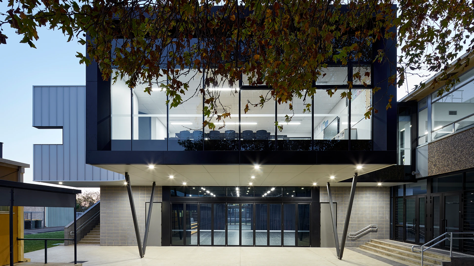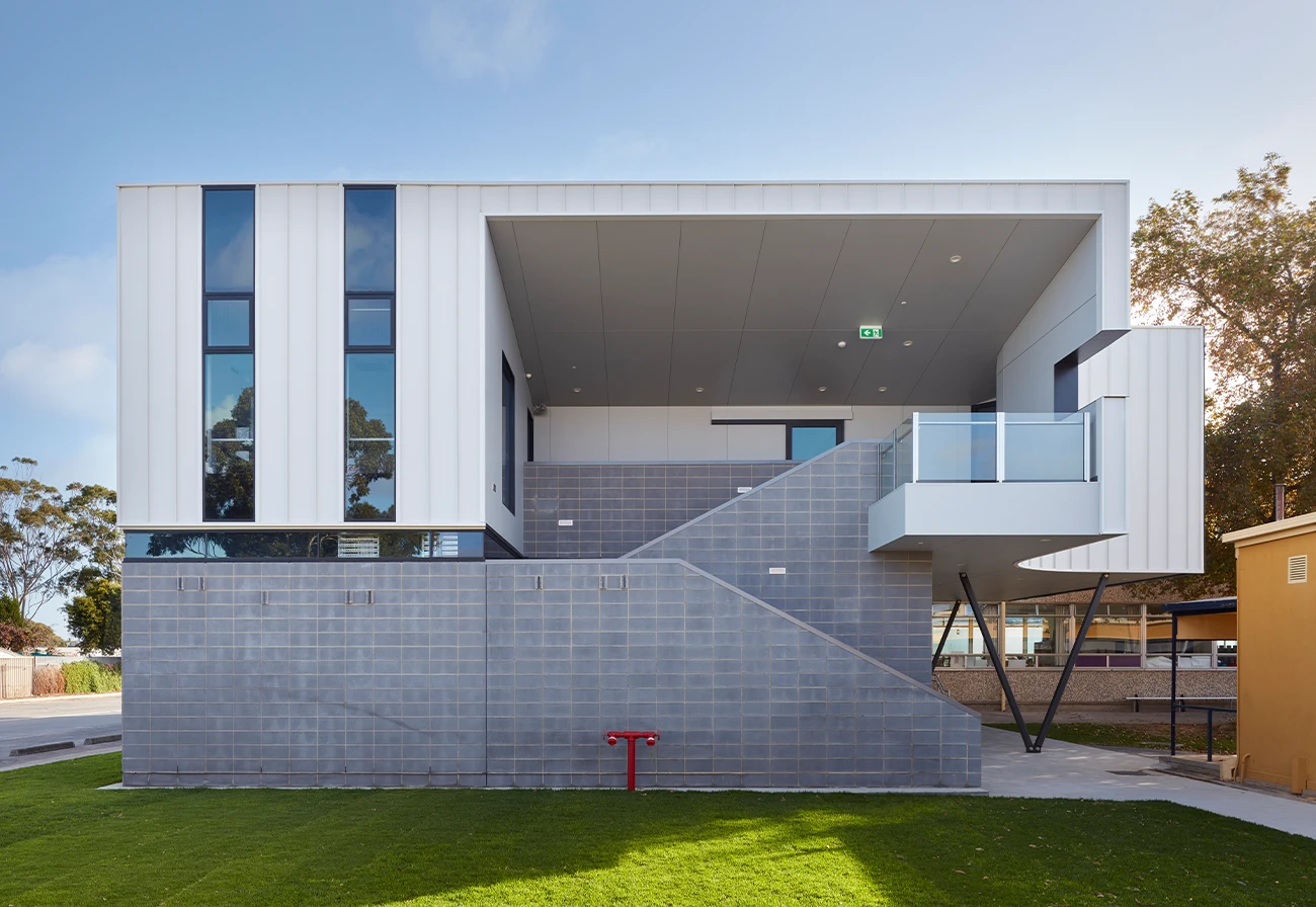 New two storey building to provide a performing arts facility on the ground floor and multi-purpose learning areas on the first floor. Refurbishment works to an existing double storey classroom block to provide visual arts classrooms and general learning areas.